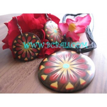 Etnik tarzı el-boyalı ahşap kolye ve parti hediyeler için küpe seti